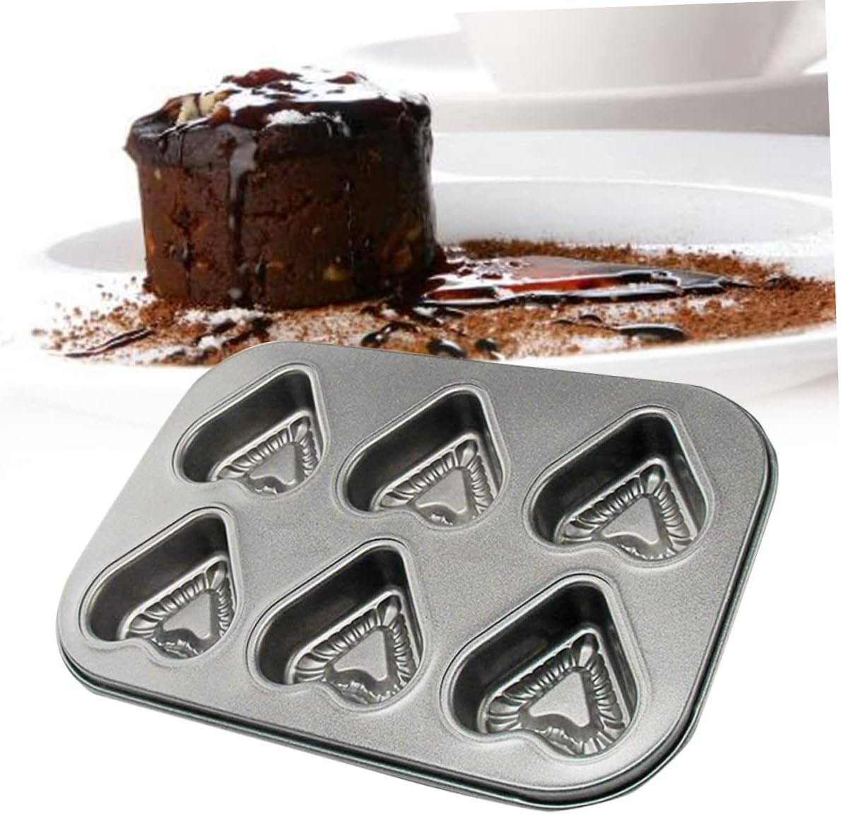 Package List 2 x 6 Hole Cake Features - Color: As shown heart shaped muffin pan. - Size: 26.5x18.5x2cm Cake . - Material: Iron baking tools. - It comes handy especially for parties when you need to bake in huge numbers baking pan. - is extremely convenient to use and is already a favorite in most of valentines day cake tray. - Stick coating for quick release for your baking items heart cake baking pan. - Durable construction with nonstick coating, easy to store and clean, Non-Stick Food Grade Coating, Specially household use cupcake maker.Goods Informationroasting pan Stick coating for quick release for your baking items.heart muffin tin Now we brings Round Shape, 6 cups / holes inbuilt HEART shape with design engraved Non-stick Coated cup Cake Baking Metal Pan / Bake ware / / Baking Tray for home and Kitchen